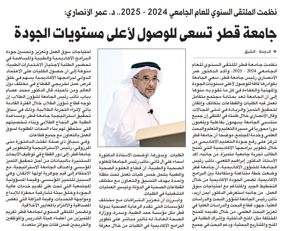 نظمت الملتقى للعام الجامعي 2024 -2025 .. د. عمر الأنصاري: جامعة قطر تسعى للوصول لأعلى مستويات الجودة